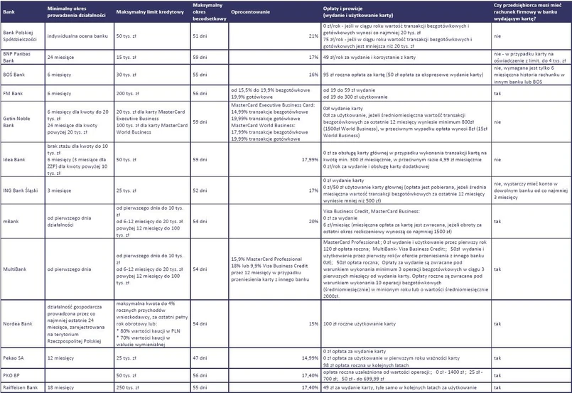 Dla wielu przedsiębiorców problemem są niepłacone przez kontrahentów na czas faktury – to powoduje, że firmy tracą płynność finansową i następnie same nie są w stanie wywiązać się ze swoich zobowiązań finansowych. Jedną z doraźnych form pomocy może być firmowa karta kredytowa. Trzeba jednak pamiętać, że takie rozwiązanie może przedsiębiorcę słono kosztować – karty kredytowe należą do najwyżej oprocentowanych produktów kredytowych na rynku. Z najnowszej ankiety Tax Care wynika, że wśród 11 banków, które oferują obecnie przedsiębiorcom firmową kartę kredytową, najwyższe oprocentowanie wynosi 21% w skali roku (BPS).