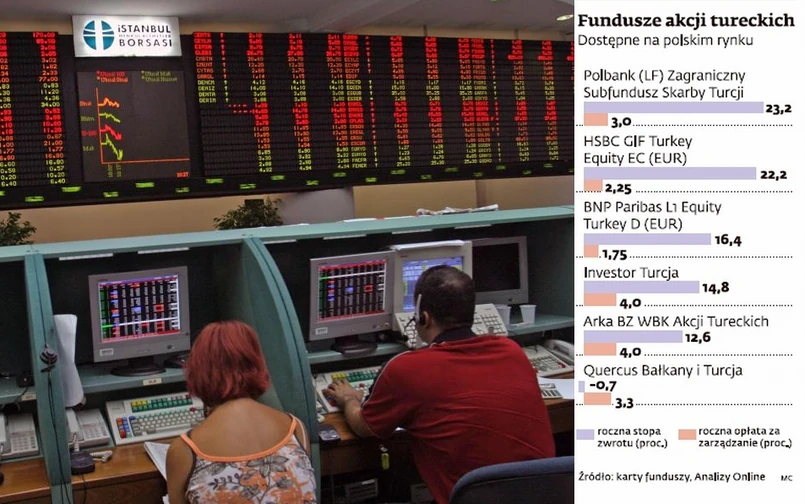 Najgorszy podmiot z tej grupy zarobił w tym okresie 25,3 proc., najlepszy –45,8 proc. Chodzi o produkty, za których pośrednictwem można inwestować w akcje tureckich spółek. Dynamiczny wzrost wycen ich jednostek wynika z przeświadczenia inwestorów, że Turcja zmienia się w tygrysa: jej gospodarka szybko rośnie, nie jest obciążona długami, a do tego jest perspektywiczna ze względu na wysoki – w porównaniu z krajami Zachodu – przyrost naturalny.