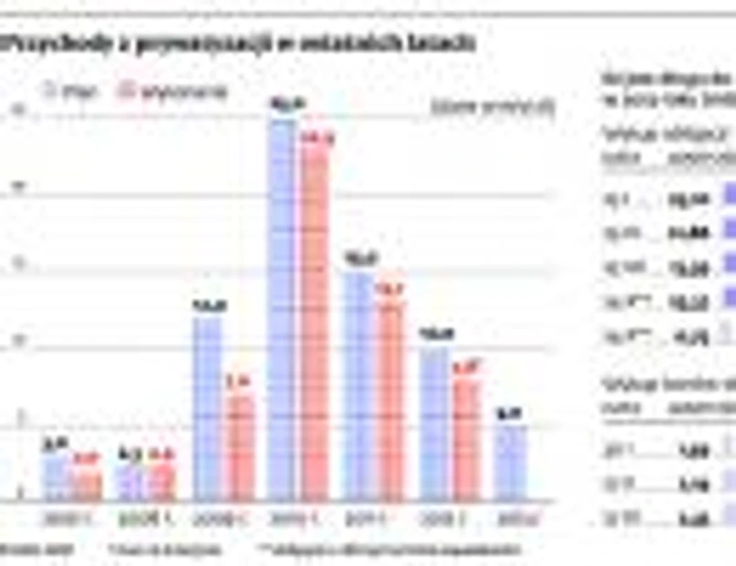 Wyhamowanie wielkości wpływów prywatyzacyjnych do 5 mld zł z 10 mld zł zaplanowanych na ten rok to w tym kontekście nie najlepsza wiadomość. – Skoro wpływy z prywatyzacji w 2013 roku mają być mniejsze, oznaczać to będzie konieczność większej emisji długu. Co oznacza, że w większym stopniu będziemy zależni od tego, co się będzie działo na rynkach finansowych – mówi Grzegorz Maliszewski, główny ekonomista Banku Millennium.
