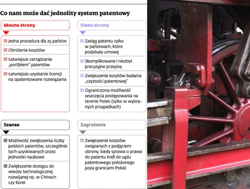 Kolejne rady z analizy dotyczą zadbania o to, by polskie jednostki naukowe po prostu były bardziej innowacyjne. Musi być silniejsze ich powiązanie z przedsiębiorstwami, by wspólnie tworzyły patenty, ale rejestrowały je i komercjalizowały. Konieczne jest też położenie nacisku na specjalistyczną naukę języków obcych, by w starciu przed sądem posługującym się angielskim, niemieckim lub francuskim (to mają być trzy obowiązkowe języki europejskiego sądu patentowego) nie być na gorszej pozycji.