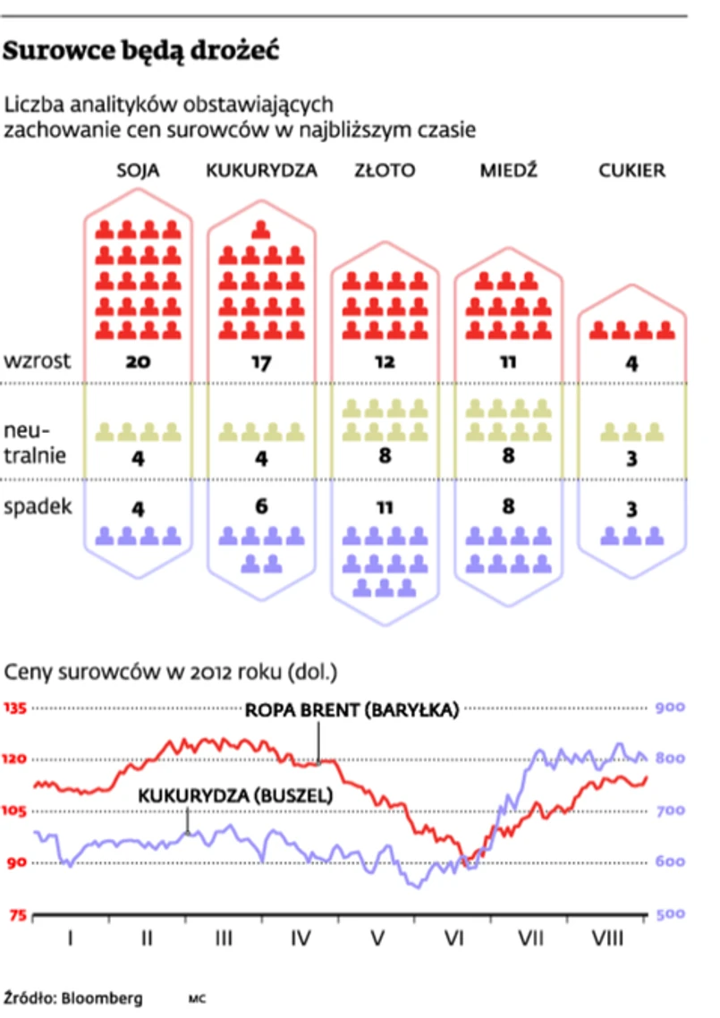 Amerykańskie fundusze inwestycyjne stosujące agresywne strategie typu hedge wierzą w dalsze wzrosty cen kukurydzy i soi, mimo że od końca czerwca te surowce rolne podrożały odpowiednio o 27,5 proc. i 18,5 proc. Liczba kontraktów otwartych przez te instytucje, obstawiających zwyżki cen wymienionych surowców jest największa od 16 miesięcy i bliska rekordowego poziomu z 2006 r. Od początku roku soja podrożała aż o 45 proc., a kukurydza o 23 proc.