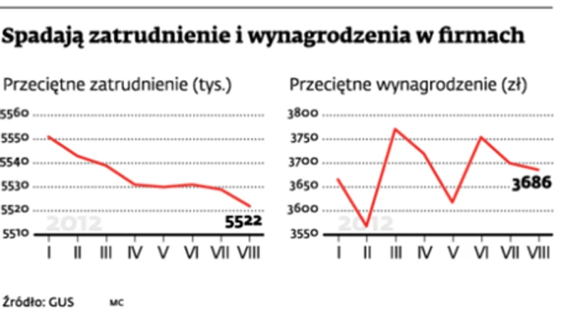 W sierpniu w sektorze przedsiębiorstw pracowało 5 mln 522 tys. osób, o 0,1 pkt proc. mniej niż w lipcu. – To oznacza, że w jednym miesiącu firmy zatrudniające powyżej 9 osób zwolniły 6,6 tys. pracowników. Od lutego ubyło już prawie 29 tys. miejsc pracy – wylicza Ernest Pytlarczyk, główny ekonomista BRE. Spadki widoczne są zwłaszcza w handlu, budownictwie i przetwórstwie. To efekt pogarszającej się sytuacji firm. Jak podał NBP, już w II kwartale odnotowywały zyski niższe od osiąganych rok temu, a także w I kwartale tego roku. Powodem był m.in. spadek tempa przychodów ze sprzedaży krajowej.