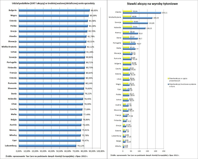 Już dziś Polska zajmuje pod tym względem czwarte miejsce w UE. Wyższy od nas udział podatków w cenie papierosów mają tylko Bułgaria, Węgry i Estonia.