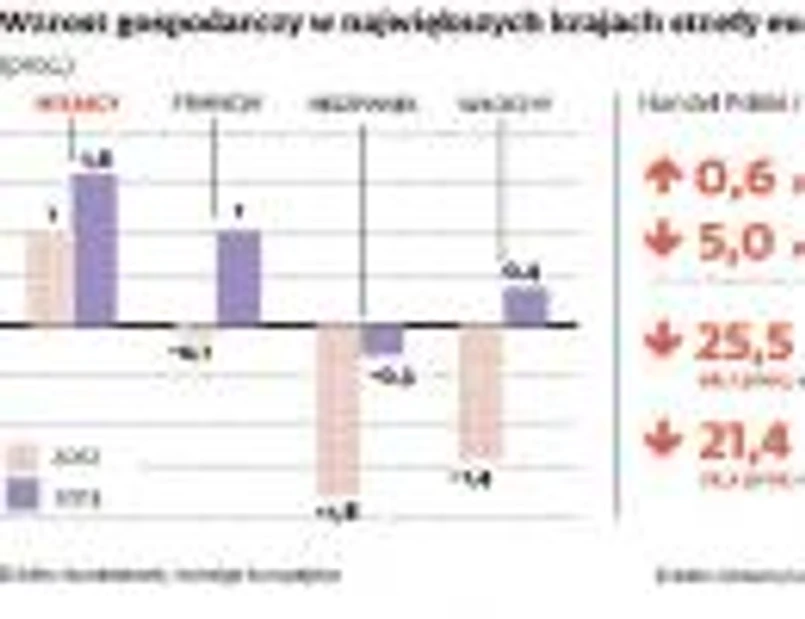 Recesja za Odrą z pewnością zaciążyłaby na wynikach polskiej gospodarki, dodatkowo spowalniając tempo wzrostu. Jednak niewielki wzrost w RFN nie jest wystarczający, aby stanowił potężny motor rozwoju naszego kraju. W okresie od stycznia do lipca sprzedaż do zachodniego sąsiada liczona w euro zwiększyła się zaledwie o 0,6 proc. Z tego powodu udział Niemiec w całym naszym eksporcie spadł z 26,1 do 25,5 proc. Jednocześnie szybko rośnie nadwyżka naszej wymiany z Niemcami, z 800 mln euro w pierwszych siedmiu miesiącach 2011 roku do 1,9 mld euro w analogicznym okresie bieżącego roku. Powodem jest spadek o 5 proc. we wspomnianym okresie importu zza Odry.
