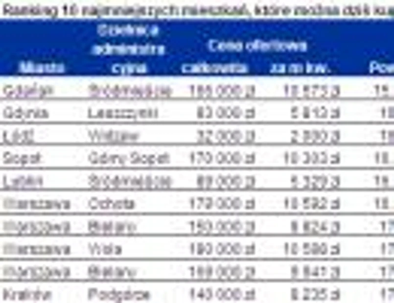 Wysokie wyceny w przeliczeniu na metr małego lokum choć czasem mogą szokować, są naturalne. Przemnożone przez powierzchnię i tak dają bowiem relatywnie niewielkie ceny całkowite i to właśnie ten czynnik stanowi najczęściej o atrakcyjności danej nieruchomości. W efekcie w prezentowanym zestawieniu TOP 10 znalazła się kawalerka w Sopocie o cenie 10,3 tys. zł za metr oraz cztery lokale 17-metrowe wymagające remontu na stołecznych Bielanach, Ochocie i Woli z cenami około 10 tys. zł za metr.