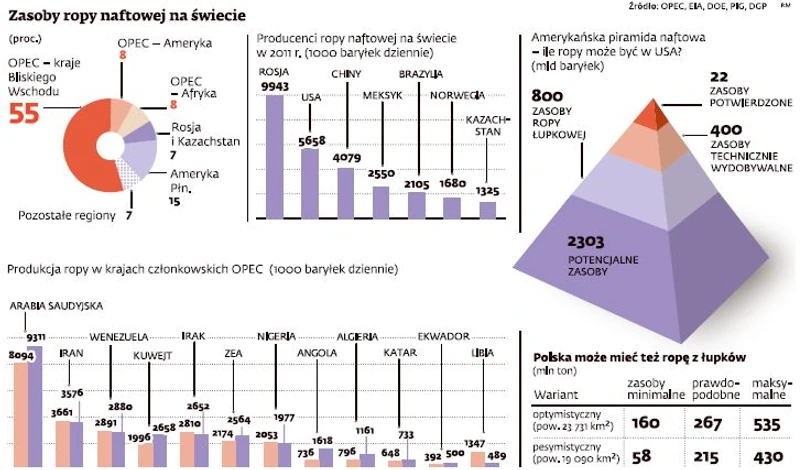 Jeszcze w 2006 roku około 60 proc. ropy w Stanach Zjednoczonych pochodziło z importu, w 2010 r. – już tylko 50 proc., a obecnie 42 proc. Za rok ten poziom ma spaść do 37 proc. – Rewolucja będzie błyskawiczna – uważa Jim Mulya, szef koncernu Conoco- Phillips. Prognozy co do zasobów ropy łupkowej w USA są rozbieżne. Mówi się jednak, że złoża mogą być nawet ponad sześć razy większe niż te, którymi dysponuje naftowa potęga – Arabia Saudyjska.