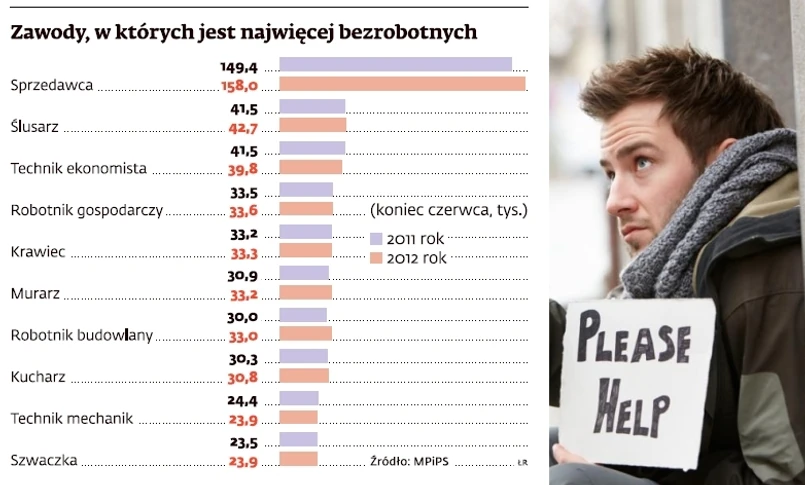 Ale bezrobotnych można znaleźć w każdym zawodzie. W urzędach pracy zarejestrowanych jest np. ponad 1,1 tys. dziennikarzy, sześciu polityków wyższego szczebla, trzech zakonników oraz pięciu duchownych wyznania rzymskokatolickiego.