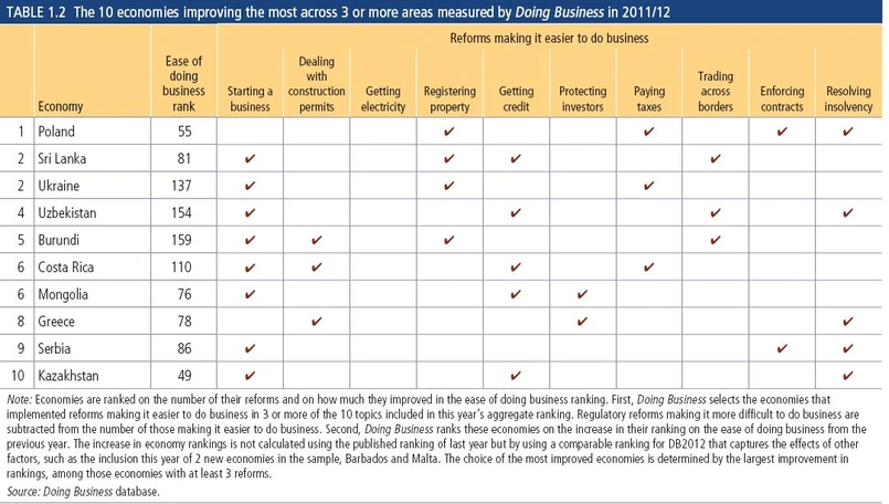 W raporcie oceniono 185 krajów na całym świecie i uznano, że Polska w tak silnej konkurencji wypadła najlepiej. Podkreślono, że głównym motywem skłaniającym do dokonywania zmian w krajach Europy Wschodniej pozostaje chęć dorównania bardziej ustabilizowanym członkom UE.