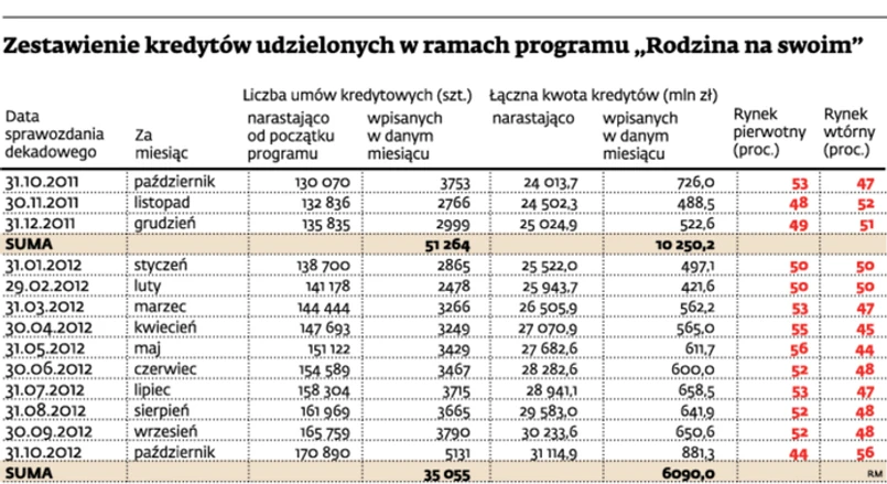 Z danych Banku Gospodarstwa Krajowego wynika, że w ubiegłym miesiącu Polacy zaciągnęli ponad 5131 takich kredytów, czyli o 1378 więcej niż miesiąc wcześniej. Wynik z października jest więc najlepszy od września ubiegłego roku, kiedy to boom na kredyty z dopłatami nakręciła zapowiedź drastycznej obniżki limitów cen dostępnych w ramach „RnS”. Wówczas banki udzieliły 5757 kredytów. Według prof. Jacka Łaszka z warszawskiej SGH podobnego wzrostu należy się spodziewać w listopadzie i w grudniu, czyli w ostatnich miesiącach działania programu.