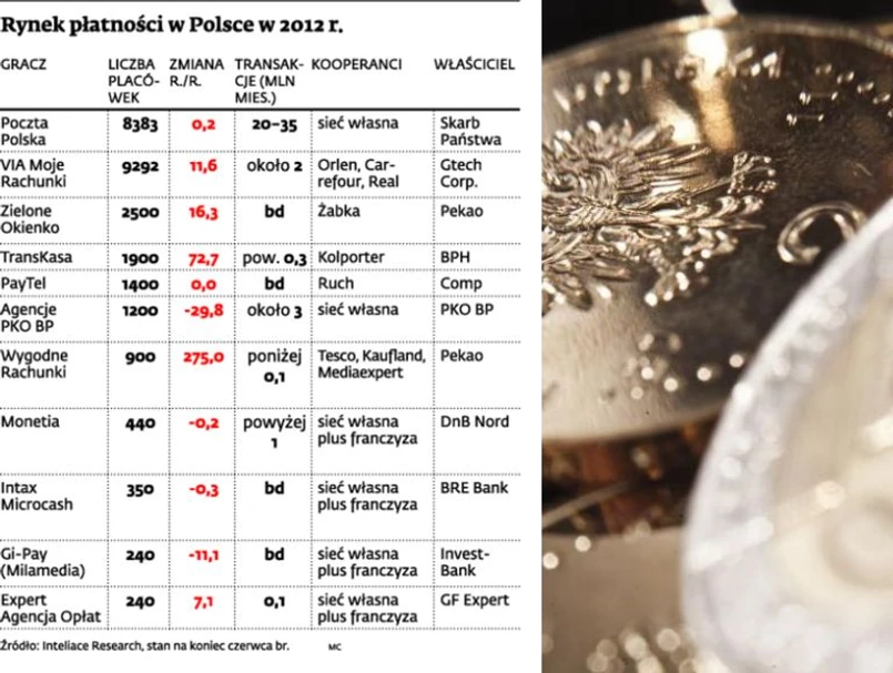 Najbardziej aktywnym graczem przez ostatnie półtora roku pod względem rozbudowy sieci płatności był Bank Pekao. Powiększył sieć Wygodne Rachunki ponaddwukrotnie i przejął liczącą 2,5 tys. placówek sieć Zielone Okienko, uzyskując dostęp do marketów Żabka. – Nie próżnuje też Bank BPH – zwraca uwagę Marcin Mazurek, prezes Inteliace Research. Bank o 72 proc., do blisko 2 tys. placówek, powiększył sieć TransKasa.