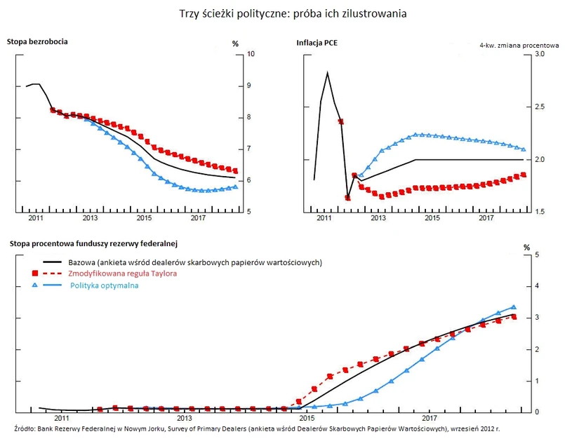 Nie wiemy, jaki będzie próg, ale prezes Banku Rezerwy Federalnej w Chicago Charles Evans pierwszy wezwał Fed do ustalenia liczbowych progów na poziomie 7 proc. dla bezrobocia lub wzrostu inflacji na poziomie 3,0 proc. Później szef Rezerwy w Bostonie Rosengren wspomniał, że Fed powinien kupować listy zastawne dopóki bezrobocie nie spadnie poniżej 7,25 proc. i pozostawić stopy na niezmienionym poziomie dopóki bezrobocie nie spadnie poniżej 6,5 proc.