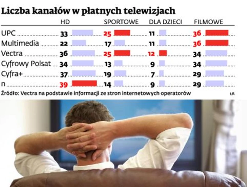 To może być magnes przyciągający odbiorców kablówek, które do tej pory dla Cyfrowego Polsatu, a także dla n i Cyfry+ były rywalem trudnym do pokonania. – W ostatnich latach baza klientów kablówek praktycznie się nie zmieniła – przyznaje Dominik Libicki. Podmioty, takie jak UPC Polska, Multimedia, Vectra, Toya czy Inea, bronią się w miastach pakietową ofertą, czyli internetem, telewizją i telefonem na jednym rachunku. Platformy miały dotychczas tylko telewizję, do której oglądania trzeba było jeszcze zainstalować specjalny talerz. Dopiero niedawno zaczęły sprzedawać internet: Cyfrowy Polsat LTE, Cyfra+ ofertę Playa, a n – Orange’a. – Obecnie grupa klientów przejętych od kablówek stanowi u nas maksymalnie do 10 proc. – dodaje Libicki.