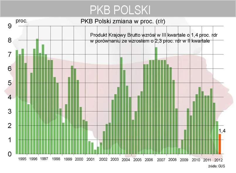 Wyniki PKB uzyskane po trzech kwartałach br. są odmienne od prognoz przyjętych przez Ministerstwo Finansów na 2013 rok. Wskazują też, że dane za czwarty kwartał br. będą jeszcze słabsze, a w pierwszej połowie 2013 r. kondycja gospodarki stanie się jeszcze gorsza.