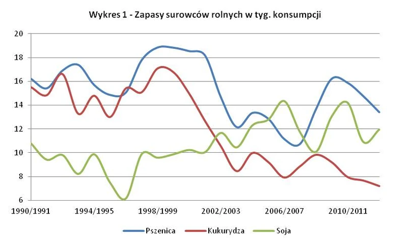 Dlatego tez biorąc pod uwagę ostatnie doniesienia z gospodarek największych producentów surowców rolnych trudno oczekiwać większych spadków w najbliższych miesiącach niż wynikałoby to z rolownia cen na kolejne kontrakty. Niższe notowania kukurydzy względem pszenicy są w pełni uzasadnione oraz wskazują również na to, że relacje ich cen w przyszłości na rynku spot powrócą do średnich z ostatnich 20 lat. Wyjątkiem jest soja, której zbiory mogą pozytywnie zaskoczyć część inwestorów. Spadek jej cen mógłby być wtedy dużo większy niż wynika to ze struktury kontraktów (nawet poniżej 1300 USD w ciągu najbliższych kilku miesięcy).