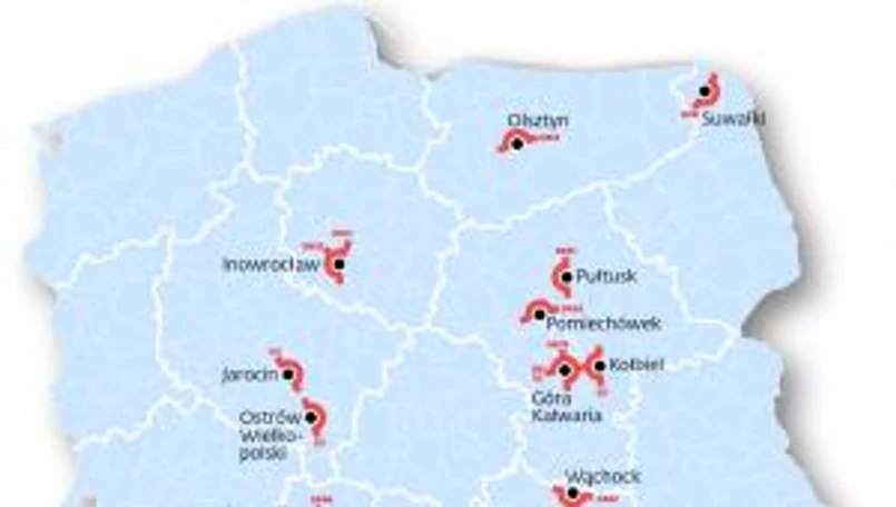 Pod znakiem zapytania jest budowa obwodnicy Góry Kalwarii, choć w lipcu wojewoda mazowiecki wydał pozwolenie na budowę. Powód – koszty sięgające 700 mln zł. Bunt szykuje się w Pułtusku, który też jest na liście zagrożonych miast, chociaż mazowiecki oddział GDDKiA ma już pełną dokumentację budowy. Mieszkańcy w apelu „Do Tuska w sprawie Pułtuska” wytknęli, że 4-tysięczny Serock dostał obwodnicę wzdłuż drogi nr 61, a pięć razy większy Pułtusk – nie.