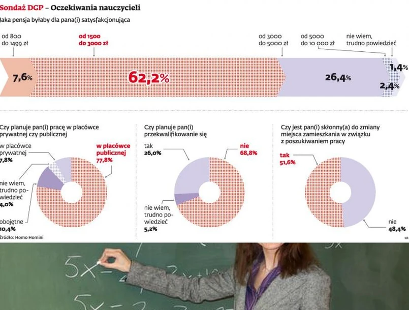Ciekawe jest to, że dla tej pożądanej pracy aż 51,8 proc. badanych jest skłonnych przeprowadzić się, co przy niskich zarobkach nie jest wcale łatwą decyzją. Jednak często to jedyne wyjście, by znaleźć pracę. Zdaniem Pleśniara czasem wystarczą dojazdy do pobliskiego miasta. Młodzi nauczyciele stawiają przede wszystkim na pracę w szkole publicznej – taka oferta dla trzech czwartych przebadanych jest najlepszym wyjściem. Prywatne placówki nie są za specjalnie pożądanym pracodawcą – wybrałby je zaledwie co dwunasty absolwent. I nic dziwnego, w takich placówkach nie chroni ich Karta nauczyciela, co oznacza, że łatwo mogą utracić pracę, mogą mieć też dłuższe godziny pracy. Ponadto zarobki nie są tam wcale wyższe od tych w placówkach publicznych. A i tak pedagodzy nie mają wygórowanych oczekiwań co do swoich pensji. Aż dla blisko dwóch trzecich satysfakcjonujące byłyby już zarobki między 1,5 a 3 tys. zł.