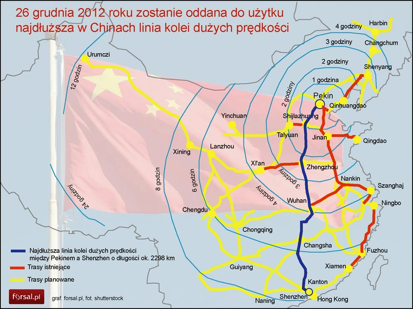 Ministerstwo Kolei poinformowało, że połączenie o długości 2298 km między stolicą Chin i jednym z wielkich portów na południu kraju zostanie otwarte już 26 grudnia. Pociągi początkowo mknąć będą z prędkością 300 km/godz., co pozwoli pasażerom na pokonanie trasy w zaledwie osiem godzin. Będzie to najdłuższa na świecie linia kolei dużych prędkości.