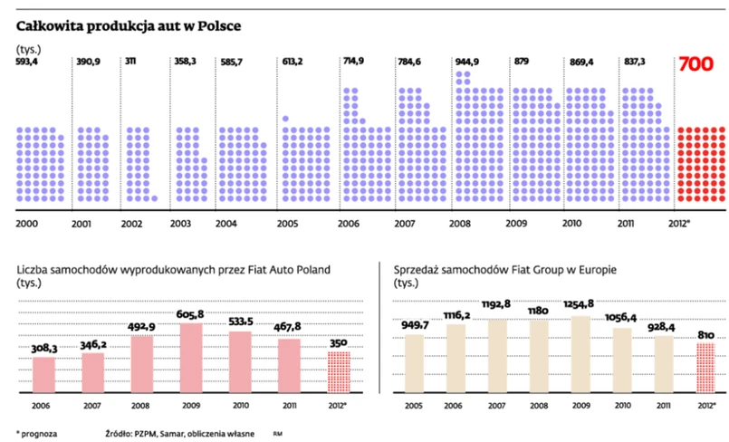 Polityczna zgoda na to, aby przenieść produkcję Pandy do Włoch, oraz fatalna sytuacja na rynku motoryzacyjnym spowodowały, że o ile jeszcze w 2009 roku z zakładu w Tychach wyjechało łącznie ponad 600 tys. samochodów, o tyle w tym roku będzie ich zaledwie 350 tys. A w przyszłym jeszcze mniej – nawet poniżej 300 tys. Fabryka już przygotowuje się do zwolnienia 1,5 tys. osób, ale to może być jedynie przedsmak dramatu, jaki nas czeka. Niewykluczone, że za kilka lat Fiat zdecyduje się całkowicie wycofać z Polski. Jak może do tego dojść?