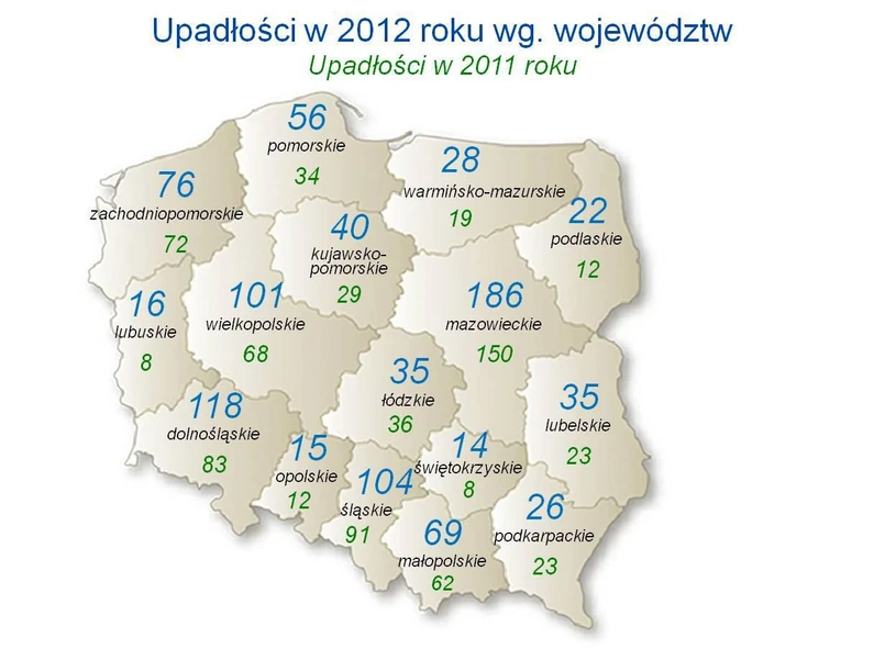 Najwięcej firm w 2012 roku upadło na Mazowszu, ale najbardziej odczuwalne efekty bankructw widoczne są w Wielkopolsce.