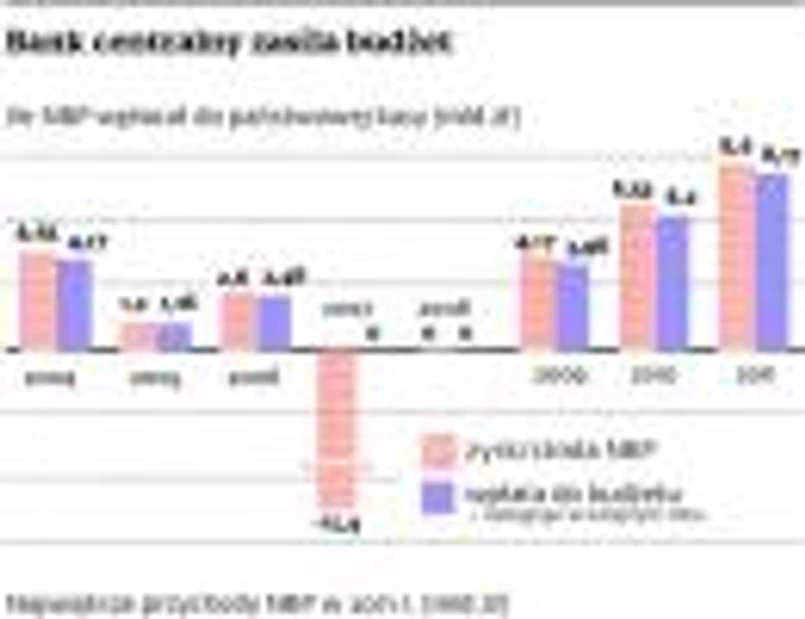 Co to oznacza? W tym roku pieniądze NBP nie zrekompensują ubytku w dochodach podatkowych budżetu, jak to się stało przed rokiem. Kwota 8,2 mld zł z banku przynajmniej w części zasypała 13-miliardową dziurę we wpływach z VAT. Nasi rozmówcy są przekonani, że tegoroczny budżet będzie miał kłopoty, bo napisano go na podstawie optymistycznych założeń wzrostu gospodarczego (2,2 proc.).
