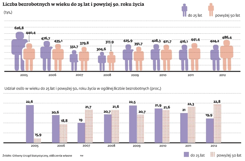 Według GUS w tym wieku było w grudniu aż 22,8 proc. zarejestrowanych osób bez zajęcia. Ich liczba zwiększyła się o 10 proc. Jeszcze bardziej wzrosło bezrobocie w grupie wiekowej 55– 64 lata – wynika z danych resortu pracy. Pod koniec grudnia takich osób było 266,6 tys. – aż o 18 proc. więcej niż przed rokiem.