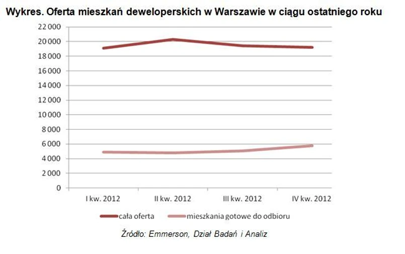 Analitycy Działu Badań i Analiz firmy Emmerson stoją na stanowisku, że obniżki cen są w nadchodzących kwartałach nieuniknione. Co prawda w ostatnim kwartale 2012 roku średnia cena na rynku warszawskim nieznacznie wzrosła – było to jednak spowodowane wyprzedaniem się relatywnie najtańszych mieszkań, które jeszcze rzutem na taśmę zdołały się zakwalifikować do uczestnictwa w Programie „Rodzina na swoim”.