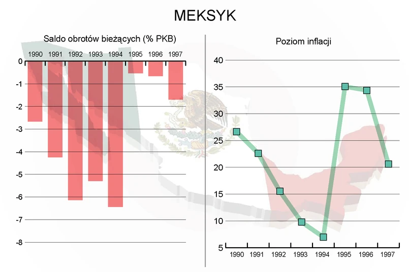 Reformy przeprowadzone na początku lat 90. odniosły spodziewany skutek: zagraniczni inwestorzy zaczęli napływać do Meksyku, inflacja spadła, a tempo wzrostu gospodarczego przyspieszyło. Jednocześnie wzrosła nierównowaga bilansu handlowego, a deficyt obrotów bieżących osiągnął w latach 1992-1994 poziom ok. 7 proc. PKB . Deficyt finansowany był przez kapitał zagraniczny. Jego wartość przekroczyła w latach 1990-1993 poziom 90 mld USD, z czego ponad 2/3 stanowiły krótkotrwałe inwestycje portfelowe. Równolegle do wzrostu kapitału zagranicznego nastąpił relatywny spadek krajowych oszczędności.