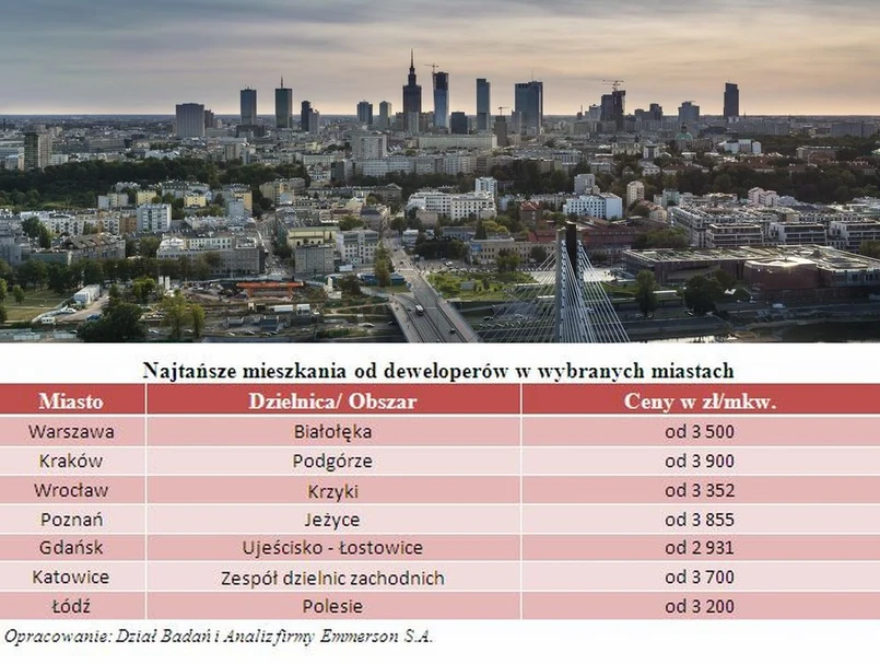 Tymczasem we Wrocławiu najniższa cena odnotowana została w uznawanej za atrakcyjną dzielnicy Krzyki. W Gdańsku po najtańsze oferty należało udać się do południowej części miasta. Jeden z działających w tamtym rejonie deweloperów zaproponował cenę nawet poniżej poziomu 3 tys. zł/mkw. Z kolei w Poznaniu najtańsze mieszkania zaoferował deweloper działający w Jeżycach. W Łodzi dzielnicą z najtańszym mieszkaniem okazało się Polesie, a w Katowicach najniższą cenę konkretnego lokalu odnotowano na terenie Zespołu dzielnic zachodnich.