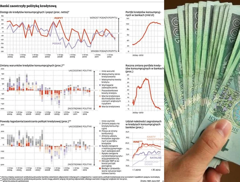 Efekt? O ile do końca 2008 r. łączny portfel kredytów konsumpcyjnych (bez uwzględnienia kart kredytowych i kredytów w rachunku bieżącym) w bankach rósł w tempie przekraczającym nawet 35 proc. w skali roku, to później zaczęło się hamowanie i trwa ono do dziś. Od blisko dwóch lat wartość tego portfela w skali roku nawet się zmniejsza. Ze 112 mld zł w sierpniu 2010 r. spadła do 104 mld zł w grudniu 2012 r.