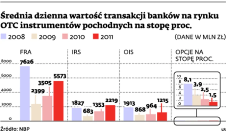 – Bardzo istotne w funkcjonowaniu takich podmiotów jest zapewnienie bezpieczeństwa gromadzenia i przechowywania informacji o instrumentach, stronach transakcji itp. Mamy ponad 18-letnie doświadczenie w tym względzie i bardzo wysokie standardy bezpieczeństwa. Dodatkowo wypracowaliśmy już kanały komunikacji z instytucjami finansowymi – zapewnia Marszałek. I dodaje, że krajowy depozyt ma już deklaracje uczestnictwa w jego systemie. Usługą zainteresowanych jest kilka dużych polskich banków. To głównie one handlują pochodnymi na stopę procentową. Według danych NBP w 2011 r. dzienne obroty na rynku nieregulowanym (OTC) tych instrumentów wynosiły ok. 9 mld zł.