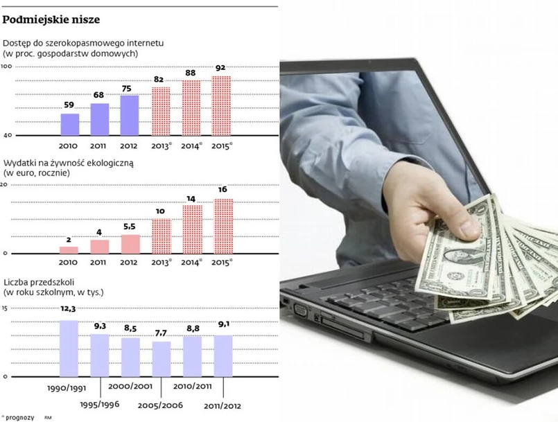 Na wsi w najbliższych latach brakować też będzie przedszkoli, żłobków, klubów i klubików dziecięcych (innych form wychowania przedszkolnego). Jak szacują eksperci dostęp do rozmaitych form wychowania przedszkolnego poza miastem jest ponad dwa razy gorszy. Po dramatycznym, spowodowanym reformą administracyjną spadku liczby przedszkoli pod koniec XX wieku, w ostatnich latach placówek co prawda przybywa (według ostatnich szacunków Głównego Urzędu Statystycznego jest ich ok. 10 tys.). Ale nadal ponad 70 proc. znajduje się w miastach, a tylko jedna trzecia na wsi. – Popyt na usługi opieki nad dziećmi zarówno w formie klasycznych przedszkoli, jak i klubików dziecięcych, świetlic, rozmaitych edu-busów, jak i w mieszkaniach prywatnych będzie znaczący – potwierdza Monika Ebert, prezes zarządu stowarzyszenia rodziców TU, współwłaścicielka firmy doradczej Zegar Słoneczny i portalu przedszkolezlobek.pl.
