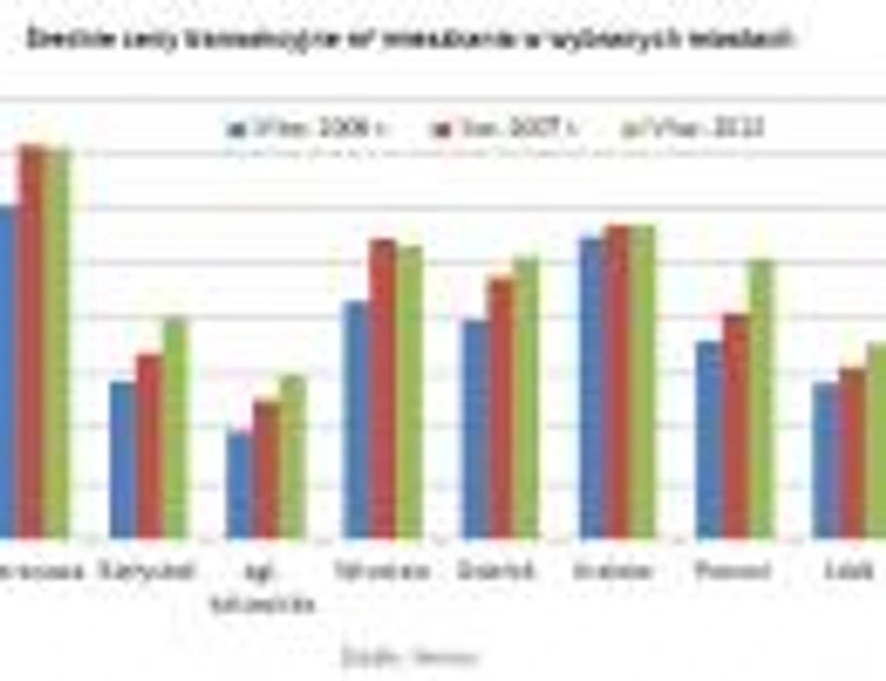 Jak wynika z raportu ZBP, ostatnie miesiące zeszłego roku przyniosły dalsze spadki cen nieruchomości. Najbardziej obniżyła się wartość m.kw. mieszkania w Krakowie i aglomeracji katowickiej – odpowiednio o 4,8 proc. oraz o 3,07 proc. W skali roku również najbardziej staniały w Krakowie, ale także w Łodzi. W przypadku Warszawy i Krakowa ceny transakcyjne mieszkań są już porównywalne z cenami z przełomu 2006 i 2007 r., we Wrocławiu są nawet nieco niższe. W przypadku Białegostoku, Łodzi, Poznania i Gdańska pozostają jeszcze sporo ponad poziomem sprzed sześciu lat.