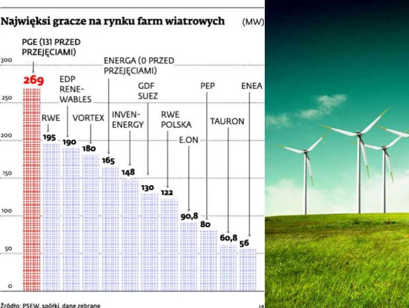 Faktycznie zaledwie kilka tygodni wystarczyło PGE, żeby podwoić moce w farmach wiatrowych. Obecnie, z blisko 270 MW, firma ta jest liderem rynku wiatrowego. Z kolei Energa, która do niedawna nie miała farm, obecnie dysponuje 165 MW. To wszystko dzięki transakcjom, jakie PGE z Energą przeprowadziły z wycofującymi się z Polski hiszpańską Iberdrolą oraz duńskim Dongiem (łączna wartość tych transakcji to ponad 1,8 mld zł).