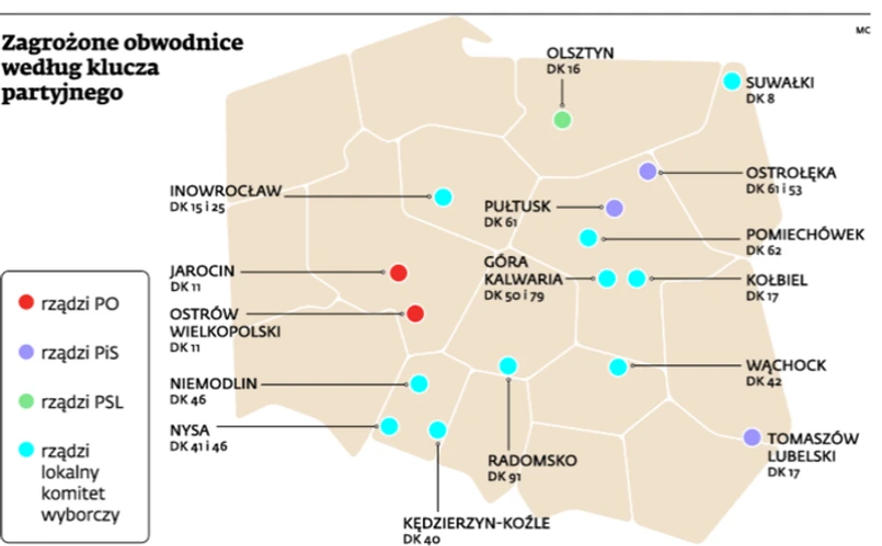 Skąd ta wojna? 6 grudnia napisaliśmy, że resort transportu zdecydował, iż w drogowych wydatkach w budżecie UE 2014–2020 priorytetem będą autostrady i trasy ekspresowe, a nie obwodnice poza tą siecią. Wtedy samorządy walczące o obwodnice zaczęły planować blokowanie dróg, wyrzucanie tranzytu i pozwy przeciwko Skarbowi Państwa. Zadanie powstrzymania buntu dostał wiceminister transportu Tadeusz Jarmuziewicz, który skierował do samorządów najnowszą propozycję: sami bądźcie inwestorami obwodnic miast na drogach krajowych. Inwestycje w tej formule miałyby zostać dofinansowane z programów UE.