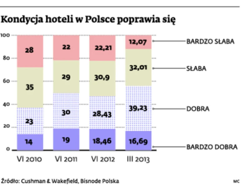 – Daje się jednak zauważyć dysproporcja między hotelami dużymi i małymi. Wśród pierwszych tylko 38 proc. jest w złej i bardzo złej sytuacji, a wśród drugich – już 47 proc. – wyjaśnia Tomasz Starzyk z Bisnode Polska. Najsłabiej radzą sobie zaś hotele z Lubelszczyzny, Pomorza Zachodniego i ze Śląska.