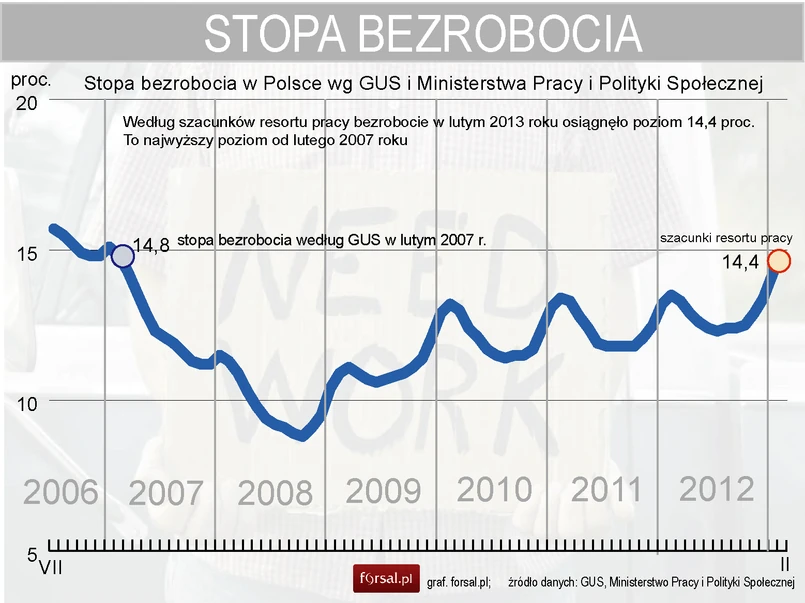 Luty był kolejnym miesiącem wzrostu bezrobocia. W tej chwili jest ono na poziomie 14,4 proc. W porównaniu ze styczniem liczba zarejestrowanych bezrobotnych wzrosła o 0,2 procent - wynika z informacji Ministerstwa Pracy i Polityki Społecznej.