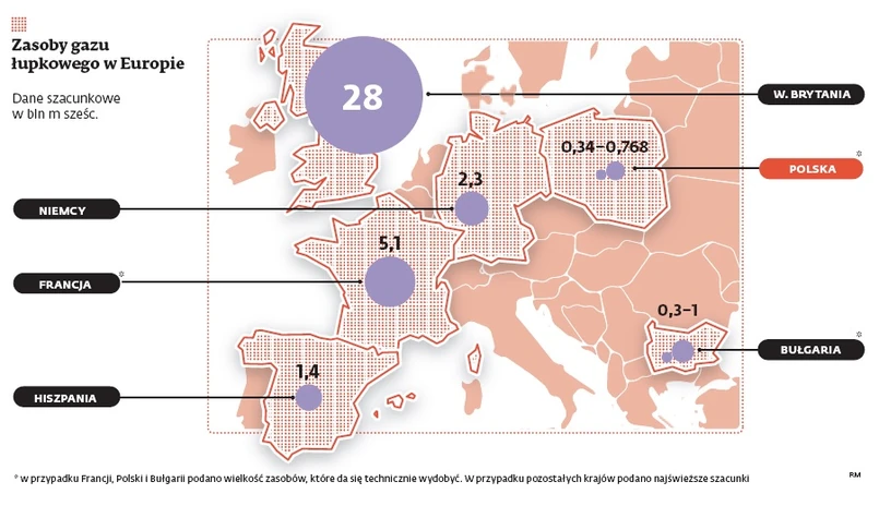 Reanimować własny sektor wydobywczy próbuje też Wielka Brytania. Pod koniec zeszłego roku rząd Davida Camerona uchylił czasowy zakaz wierceń w łupkach i zapowiedział, że chce uczynić z Wielkiej Brytanii europejskiego lidera w eksploatacji takich złóż. Według ostatnich szacunków geologów brytyjskie zasoby gazu mogą wynosić nawet 28 bln m sześc. gazu.