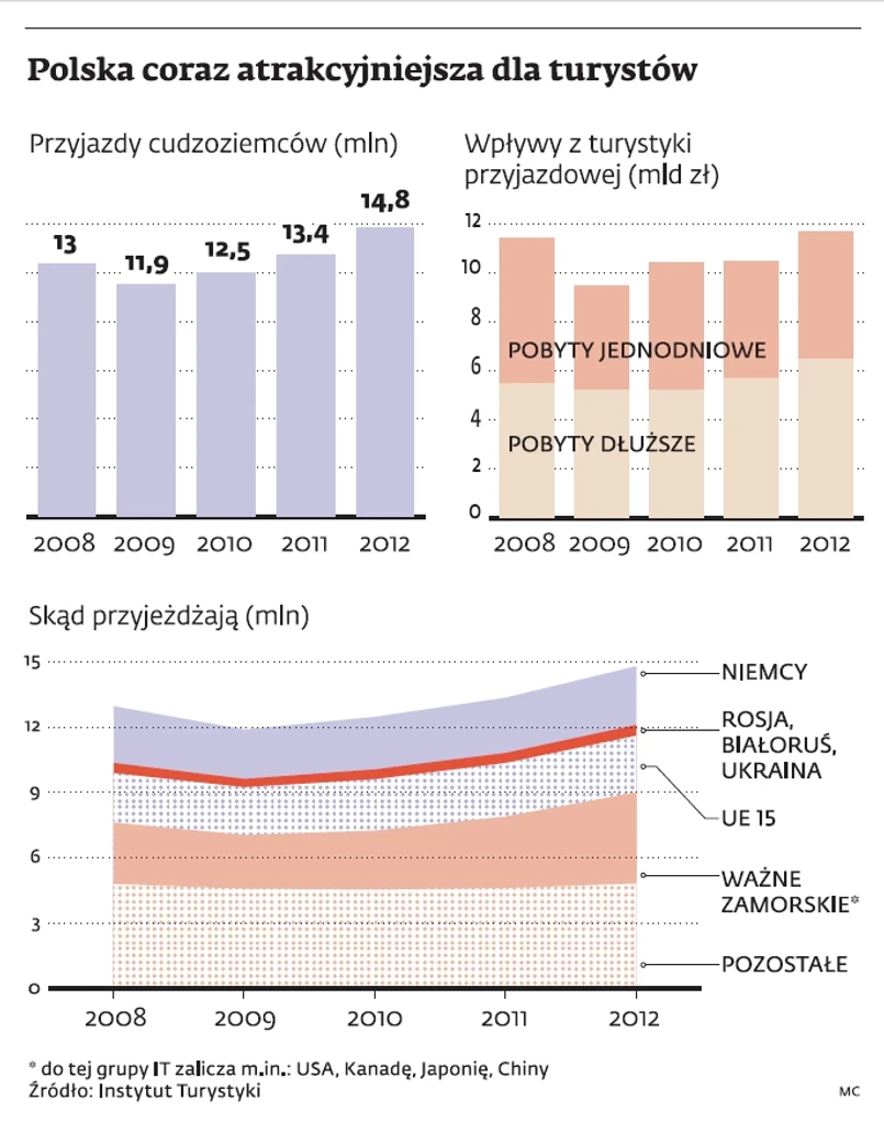 Pod względem wydatków przyjezdnych rok 2012 był najlepszy od początku poprzedniej dekady, a pod względem liczby turystów – rekordowy w ciągu ostatnich pięciu lat. W głównej mierze przyczyniło się do tego Euro 2012. – Przełożyło się nie tylko na liczbę odwiedzających. Zakończona na początku lipca impreza zwiększyła zainteresowanie naszym krajem i spowodowała, że sezon turystyczny wydłużył się na wrzesień i październik, co pozwoliło branży realizować większe przychody również w ostatnim kwartale roku – tłumaczy Kinga Fromlewicz ze spółki eTravel.