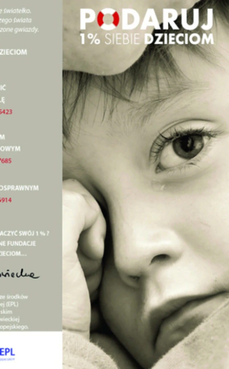 5-letni Jaś cierpi na ciężką chorobę. Dzięki 1 proc. twojego podatku możemy go uratować” – każdy z nas widział takie ogłoszenia. Pojawiają się w większości gazet, w spotach telewizyjnych, w internecie, na Facebooku, trafiają do naszych skrzynek e-mailowych, są na ulicznych billboardach czy na plakatach rozwieszanych w szkołach i przedszkolach. Ich liczba zawsze znacząco się zwiększa w pierwszych miesiącach roku, kiedy zaczyna się okres rozliczania podatków. W niektórych ogłoszeniach występują małe dzieci, w innych znani aktorzy, a hasła są od chwytających za serce po skierowane do bardziej pragmatycznych odbiorców – jak ogromny plakat jednego z hospicjów z nawiązującym do piosenki Republiki podpisem „Ta reklama jest zrobiona dla pieniędzy”.