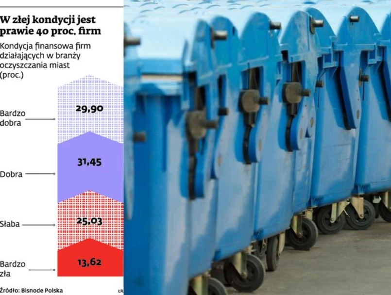 Od 1 lipca wywozem śmieci zajmie się w imieniu samorządu jedna firma. Przetargi od dawna spędzają sen z powiek przedsiębiorcom, którzy się obawiają, że jeśli ich nie wygrają, będą musieli zamknąć interes. Szczególnie że sytuacja w branży nie jest dobra. Blisko 40 proc. firm jest w złej lub bardzo złej kondycji finansowej – wynika z raportu przygotowanego dla DGP przez Bisnode Polska.