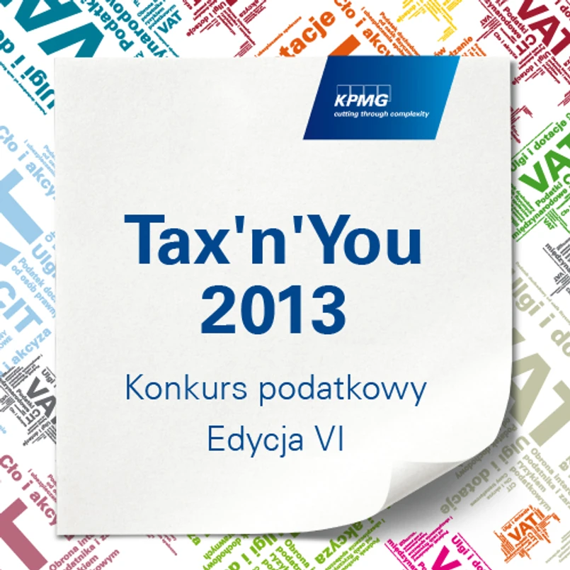 Tax'n'You to konkurs wiedzy podatkowej, który firma doradcza KPMG organizuje dla studentów i ubiegłorocznych absolwentów studiów wyższych z całej Polski. Konkurs daje możliwość sprawdzenia wiedzy akademickiej młodych osób na przykładzie zadań, z jakimi na co dzień mierzą się doradcy podatkowi, a także jest okazją do zdobycia nagród.