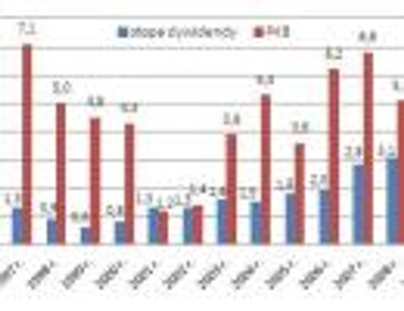 W ciągu kilkunastu poprzednich lat, wspomniana prawidłowość była bardzo dobrze widoczna. Stopa dywidendy dla ogółu spółek, notowanych na warszawskim parkiecie, zmniejszała się w okresach, gdy gospodarka słabła, rosła zaś w czasie lepszej koniunktury. Schemat ten nie uległ zakłóceniu nawet w kryzysowych i pokryzysowych latach 2008-2011. Sytuacja uległa radykalnej zmianie w 2012 r. Tempo wzrostu gospodarczego zmniejszyło się z 3,9 do 2 proc., a więc niemal o połowę, zaś stopa dywidendy wzrosła z 2,9 do 3,9 proc. (trzeba jednak pamiętać, że stopę dywidendy za dany rok liczy się biorąc za podstawę zyski wypłacone w tym roku, jednak wypracowane rok wcześniej). Warto też zauważyć, że w ciągu ostatnich 17 lat jedynie dwukrotnie (w latach 2001 i 2002 ) mieliśmy do czynienia z sytuacją, gdy stopa dywidendy dla giełdowych firm była zbliżona do tempa wzrostu PKB, a tylko raz, w nietypowym 2009 r., przewyższała dynamikę wzrostu gospodarczego. Nawet w latach gospodarczego boomu stopa dywidendy była o ponad połowę niższa niż tempo wzrostu PKB. Jeśli uznamy, że wcześniej polityka dywidendowa spółek była zbyt „oszczędna”, to sytuację, w której stopa dywidendy jest dwukrotnie wyższa niż dynamika PKB, trudno uznać za racjonalnie uzasadnioną. W tym roku po raz pierwszy będziemy mieć prawdopodobnie do czynienia z sytuacją, gdy mimo ewidentnego pogorszenia się kondycji gospodarki i sporej części spółek, zarówno kwota dywidendy, jej stopa, a także liczba firm dzielących się zyskami będą porównywalne do zanotowanych w bardzo dobrym pod tym względem 2012 r.