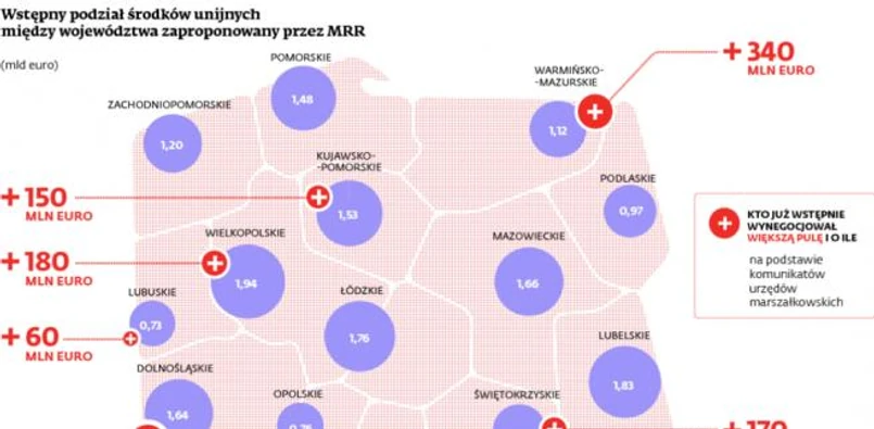 Na tej podstawie pokazujemy, jakie sumy udało się wywalczyć poszczególnym województwom.