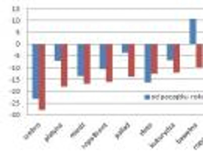 Warto zauważyć, że w ostatnich tygodniach, mniej więcej od początku lutego, notowania miedzi i ropy naftowej poszły w dół mocniej, niż ceny złota. Złoto imponowało dynamiką zmian w trakcie kilku sesji w połowie kwietnia, ale silniejsze, przekraczające łącznie 16 proc. spadki miały miejsce w przypadku miedzi i ropy naftowej. Te kluczowe z punktu widzenia oceny koniunktury gospodarczej surowce tanieją także w średnioterminowej perspektywie. W ciągu ostatnich dwunastu miesięcy ich notowania obniżyły się od 13 proc. w przypadku miedzi do 16 proc. w przypadku ropy.