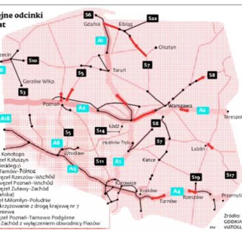 Jak wynika z naszych nieoficjalnych ustaleń, pierwotnie rozważane było włączenie w lipcu do systemu viaTOLL m.in. fragmentu trasy S8 Jeżewo – Białystok oraz odcinek A4 Jarosław Zachód – węzeł Przemyśl. Dlaczego tak się nie stało – nie wiadomo. Eksperci są zdania, że może to być efekt opóźnień inwestycyjnych lub opór samorządów, które boją się, że zostaną rozjechane przez tiry w wyniku wprowadzenia opłat na tych drogach. Być może zostaną włączone do viaTOLL w grudniu. Rozszerzeniem systemu zajmie się jego operator, firma Kapsch. Jej przedstawiciele nie komentują naszych ustaleń. – Szczegółowe informacje zostaną przekazane użytkownikom i dziennikarzom w połowie maja – zapowiada Krzysztof Gorzkowski z Kapsch.
