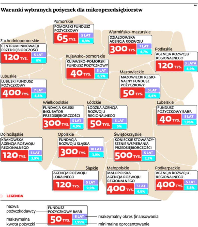 – Aby uzyskać pożyczkę, należy złożyć wniosek wraz z wymaganymi przez konkretną instytucję załącznikami. Udzielane są one najczęściej na okres do 5 lat, przedsiębiorcy oferuje się często okres karencji dochodzący do 6 miesięcy – mówi Marcin Mańkowski.