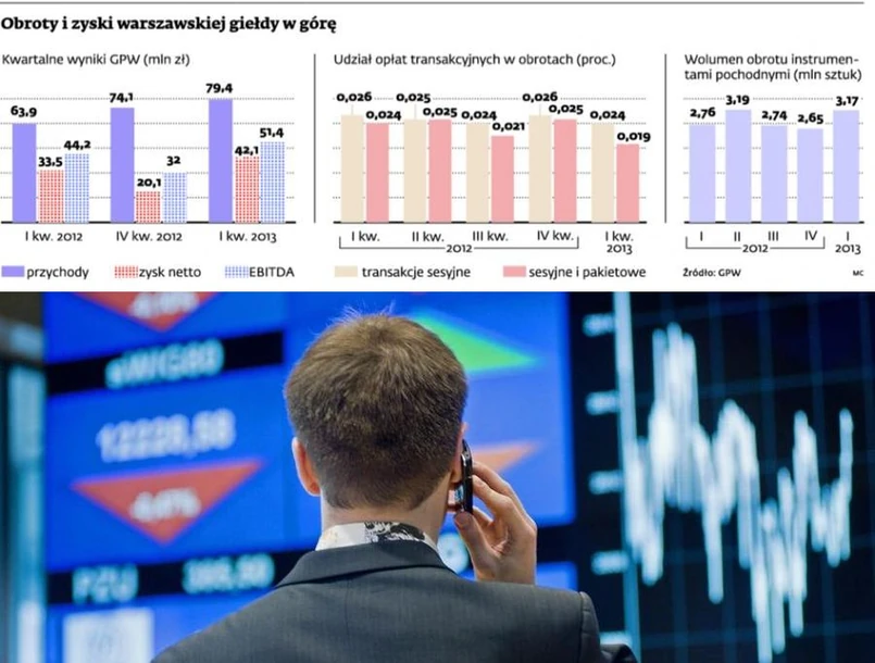 Łączne przychody grupy kapitałowej GPW wzrosły w stosunku do I kw. 2012 r. o ponad 24 proc., do 79,4 mln zł. Czysty skonsolidowany zysk sięgnął 42,1 mln zł, co oznacza wzrost w ujęciu rok do roku o 25,5 proc.