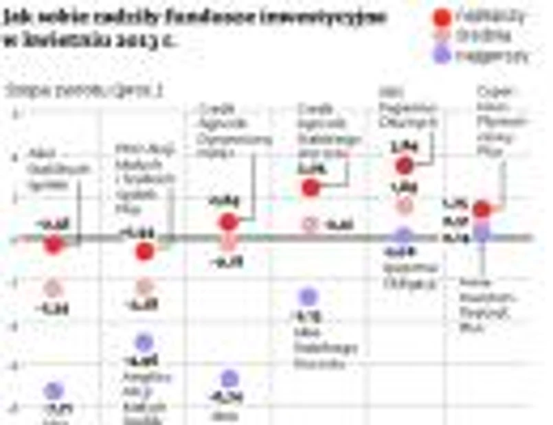 W tej grupie nie brakowało także spadkowiczów. Kwiecień nie był dobry głównie dla funduszy stawiających na rosyjskie i afrykańskie akcje: Investor Rosja stracił 4,75 proc., Arka Prestiż Akcji Rosyjskich – ponad 6 proc., zaś Noble Fund Africa – prawie 7,1 proc. Pod kreską znalazły się też wszystkie fundusze tureckich akcji. Ujemne wyniki zanotowały także wszystkie akcyjne fundusze Quercusa, m.in. dlatego właśnie to towarzystwo straciło pozycję lidera.