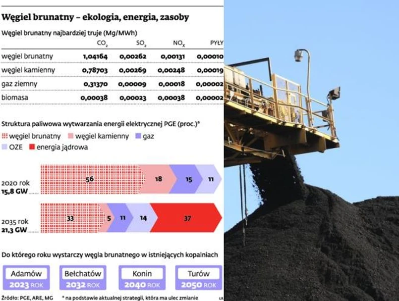 Słowa premiera natychmiast uruchomiły lawinę spekulacji na temat nowej strategii PGE. To największy koncern energetyczny w Polsce, który w swoich elektrowniach produkuje niemal 40 proc. krajowej energii. Już dziś wytwarza najwięcej prądu, spalając węgiel brunatny, ale ostatnie decyzje zarządu PGE pokazują, że rola tego paliwa będzie jeszcze rosła. Największy wpływ na przyszłą strukturę zużycia paliwa w koncernie ma decyzja o wycofaniu się z budowy dwóch bloków na węgiel kamienny w Opolu o łącznej mocy 1800 MW. To ponad 11 proc. wszystkich mocy zaplanowanych na 2020 rok.