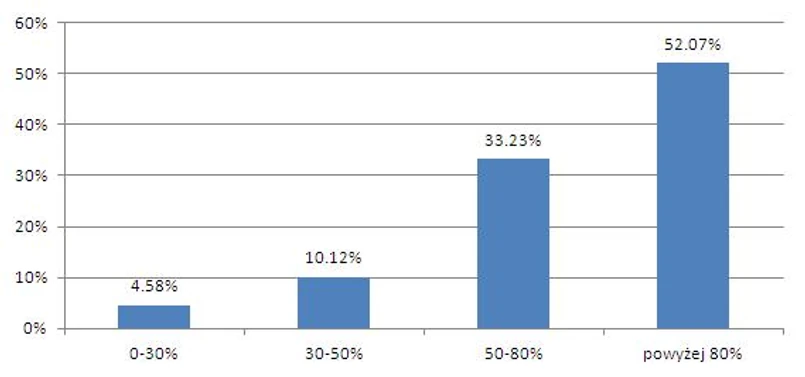 W zdecydowanej większości banki wymagają, by klient ubezpieczył kwotę, która wyrasta ponad 80 proc. wartości zabezpieczenia. Przykładowo: jeśli ktoś kupuje mieszkanie za 300 tys. zł i ma 40 tys. zł gotówki, to musi ubezpieczyć 20 tys. zł (80 proc. z 300 tys. zł to 240 tys. zł), ale już ktoś zadłużający się bez wkładu własnego do ubezpieczenia ma 60 tys. zł. Najczęściej banki pobierają składkę ubezpieczeniową raz na kilka lat i wynosi ona 3-4,5 proc. ubezpieczanej kwoty. To oznacza, że osoba z 40-tys. wkładem zapłaci 600-900 zł, ale już ktoś bez zapasu gotówki musi liczyć się z kosztem rzędu 1800-2700 zł. Najprościej można powiedzieć, że im kwota kredytu wyższa i wkład własny mniejszy, tym koszt ubezpieczenia większy.